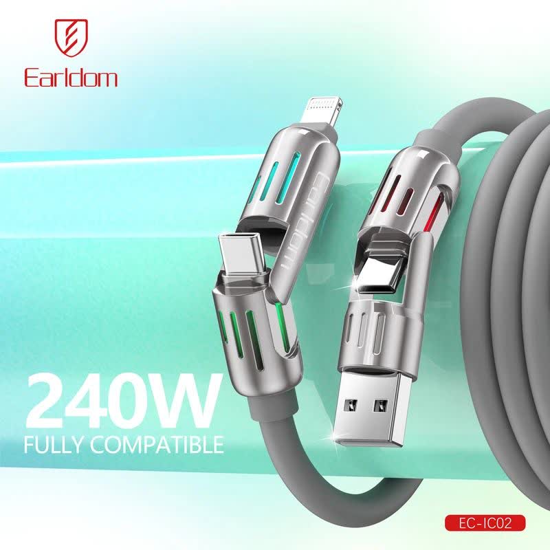 کابل شارژ 4 حالته x-hanz مدل hl502 یک انتخاب حرفهای برای کاربران آیفون و دستگاههای تایپسی است این کابل با پشتیبانی از 4 رابط مختلف طراحی شده و توان شارژ فوقالعاده تا 240 وات برای USB-C و پشتیبانی از PD 30W برای آیفون را ارائه میدهد وجود دو سر تایپسی انعطاف بیشتری در استفاده فراهم کرده و جنس مقاوم آلیاژ روی و سیلیکون دوام بالایی را تضمین میکند شارژ سریع و ایمن برای همه دستگاهها از ویژگیهای اصلی این محصول است فروشگاه اینترنتی بیش bish.ir این کابل چندکاره را برای تجربهای مطمئن و کاربردی در اختیار شما قرار داده است.