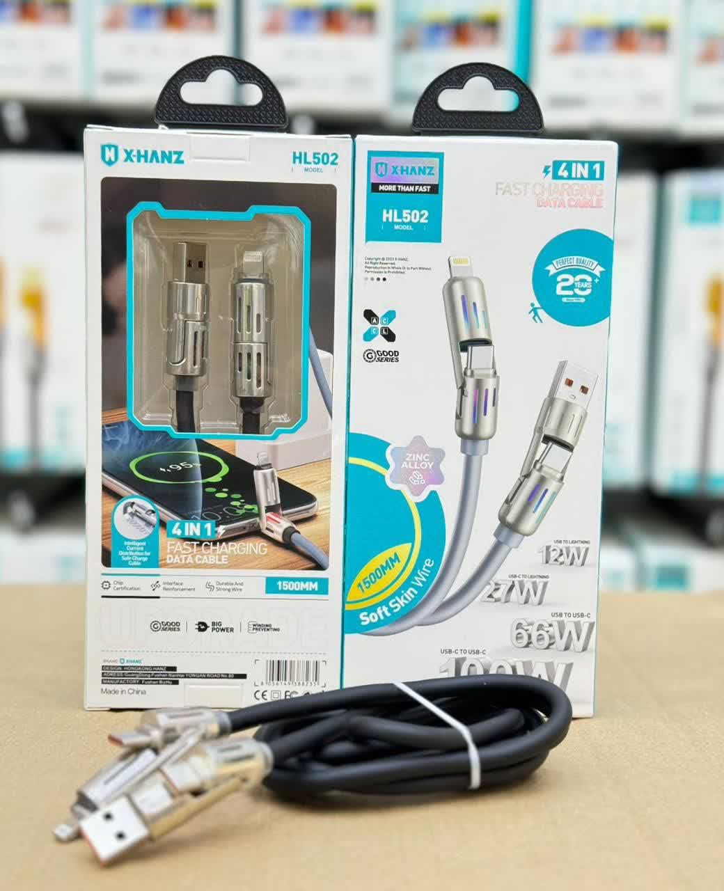کابل شارژ 4 حالته آیفون و تایپسی x-hanz مدل hl502